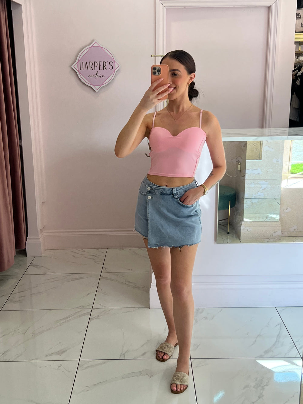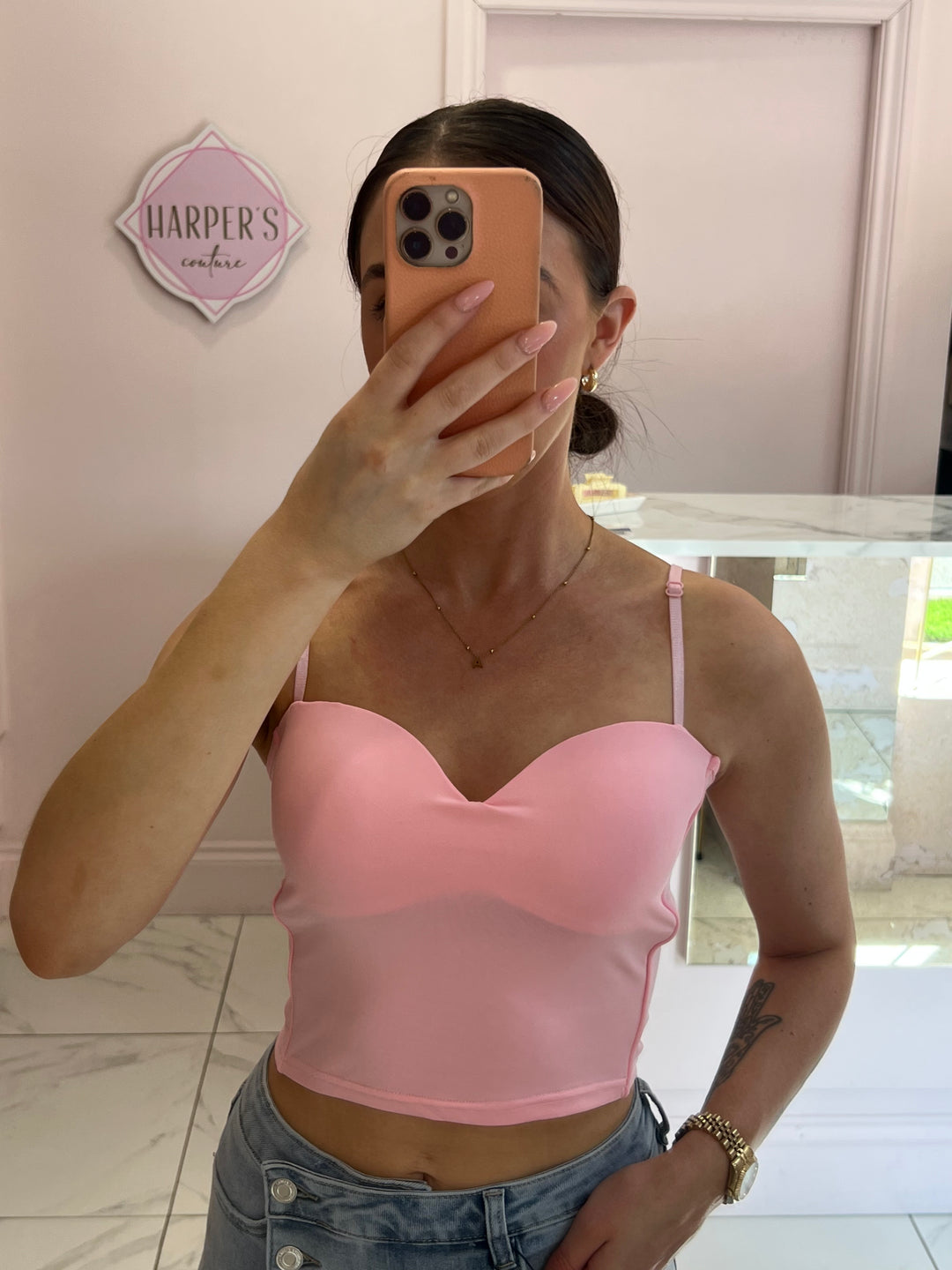 Becky Pink Stretch Detail Vest Top