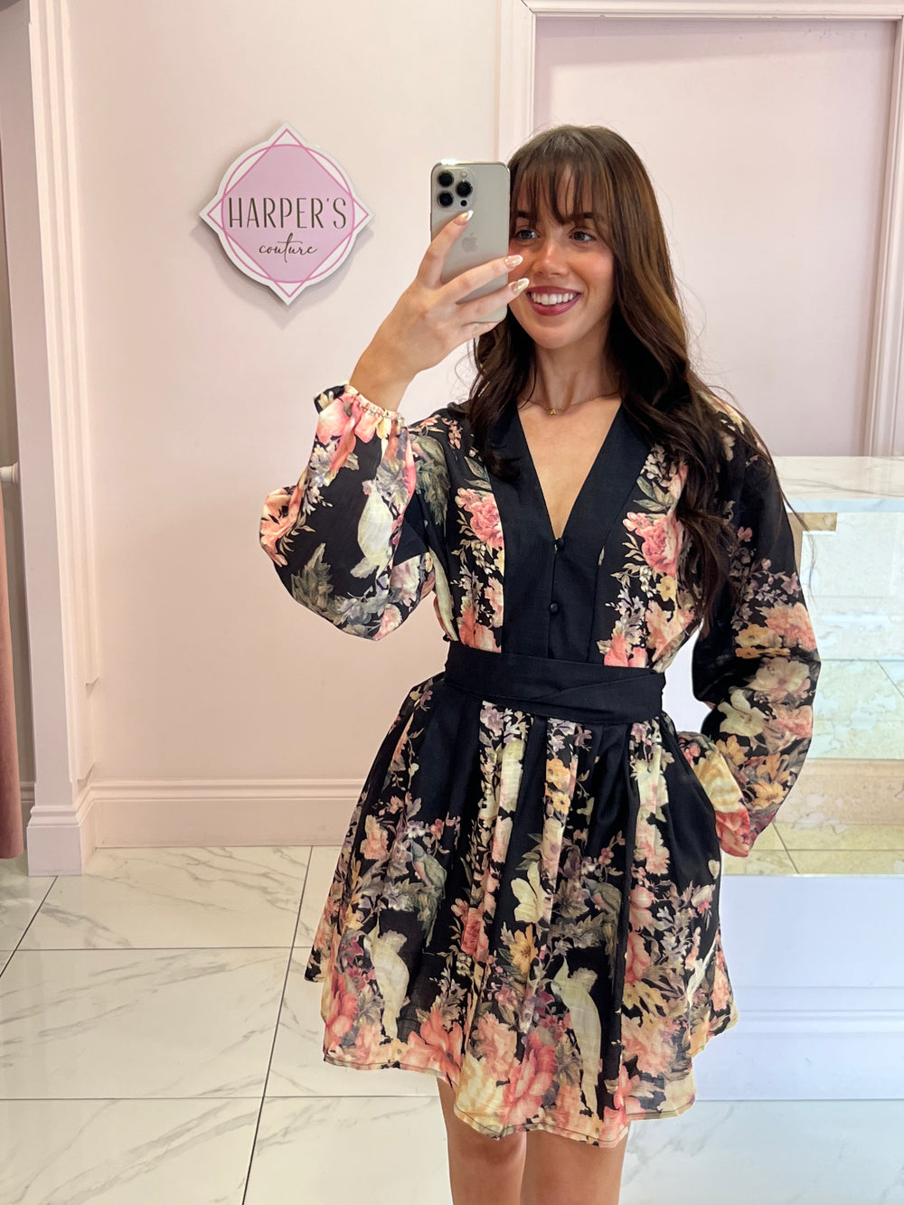 Winona Black Belted Multicoloured Flower Dress