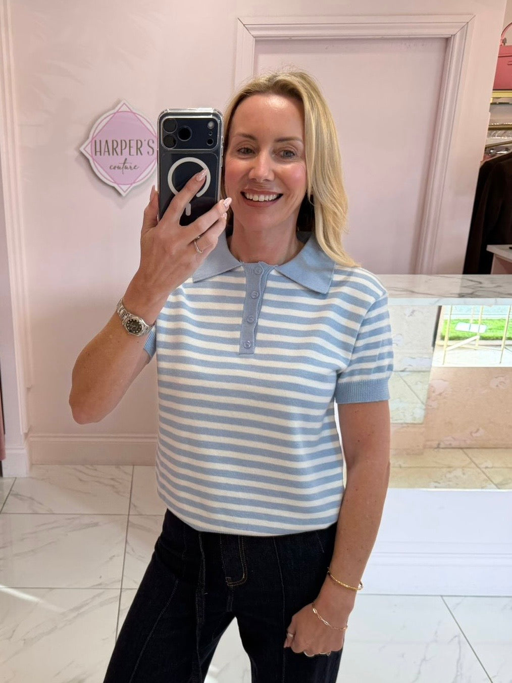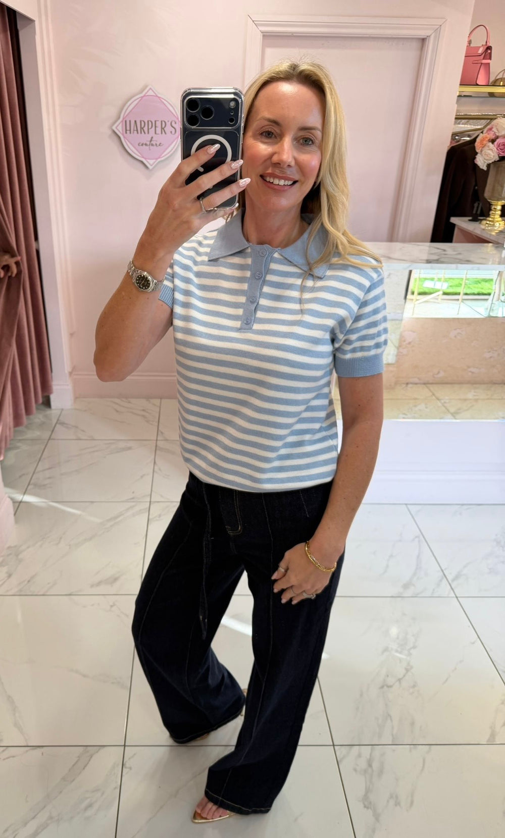 Daphne Blue & White Embroidery Detail Shirt/Blouse