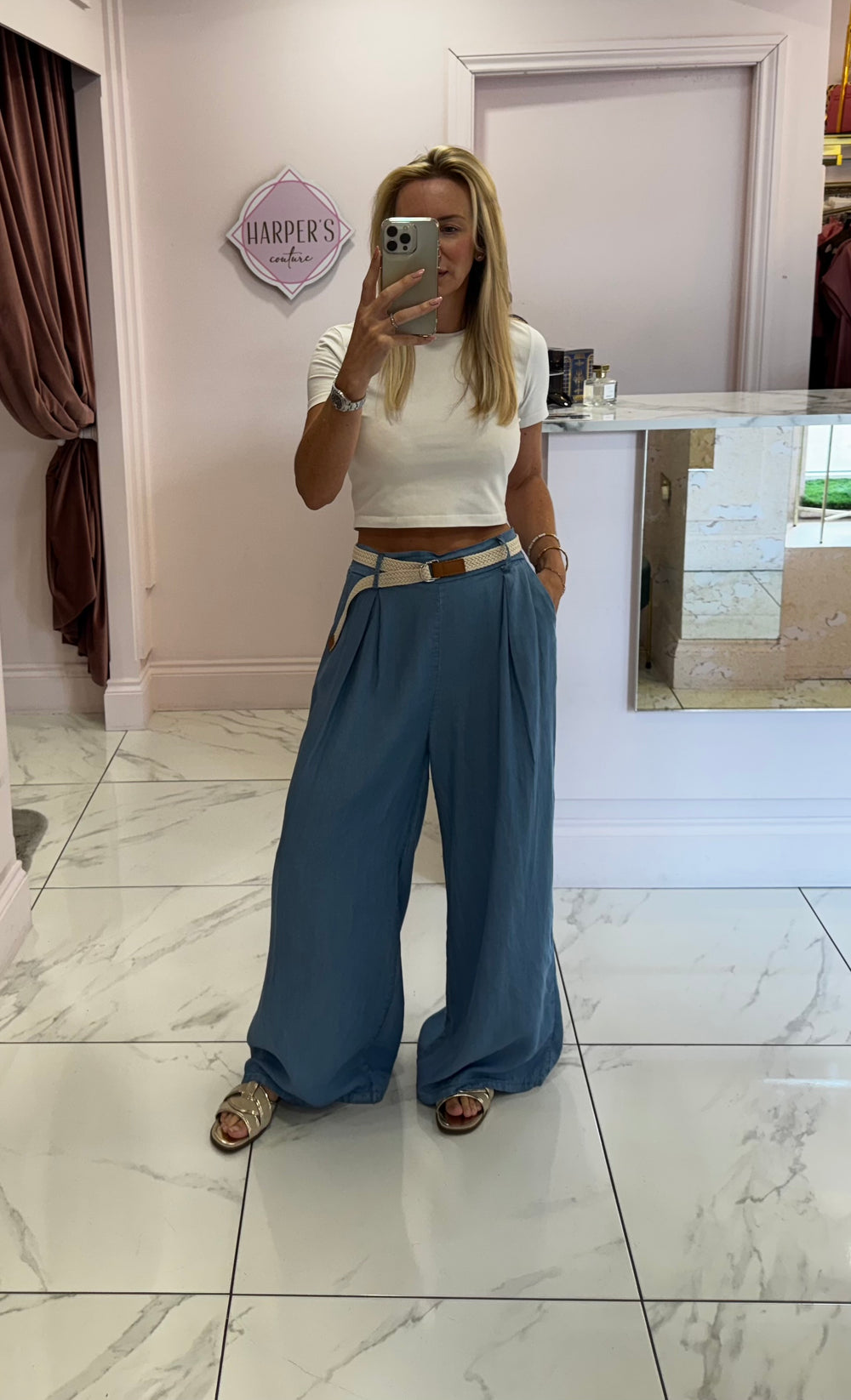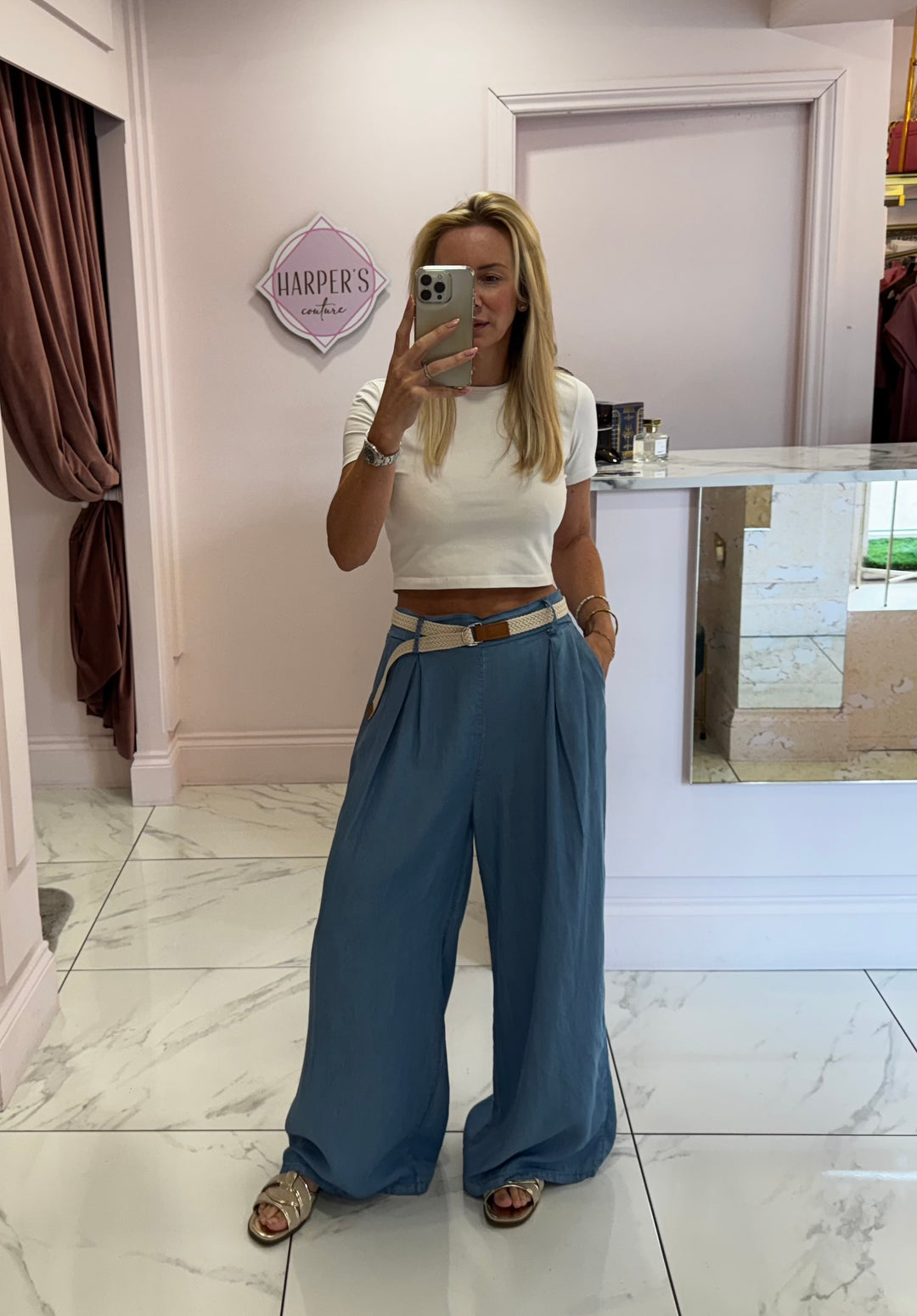 Doris Soft Lightweight Denim Belted Long length Trousers