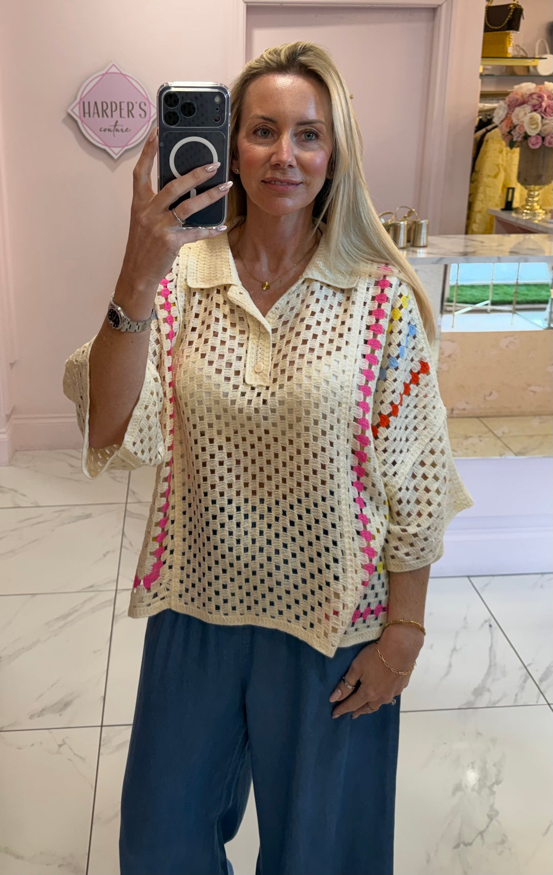 Layla Cream & Colourful Crochet Knit Top