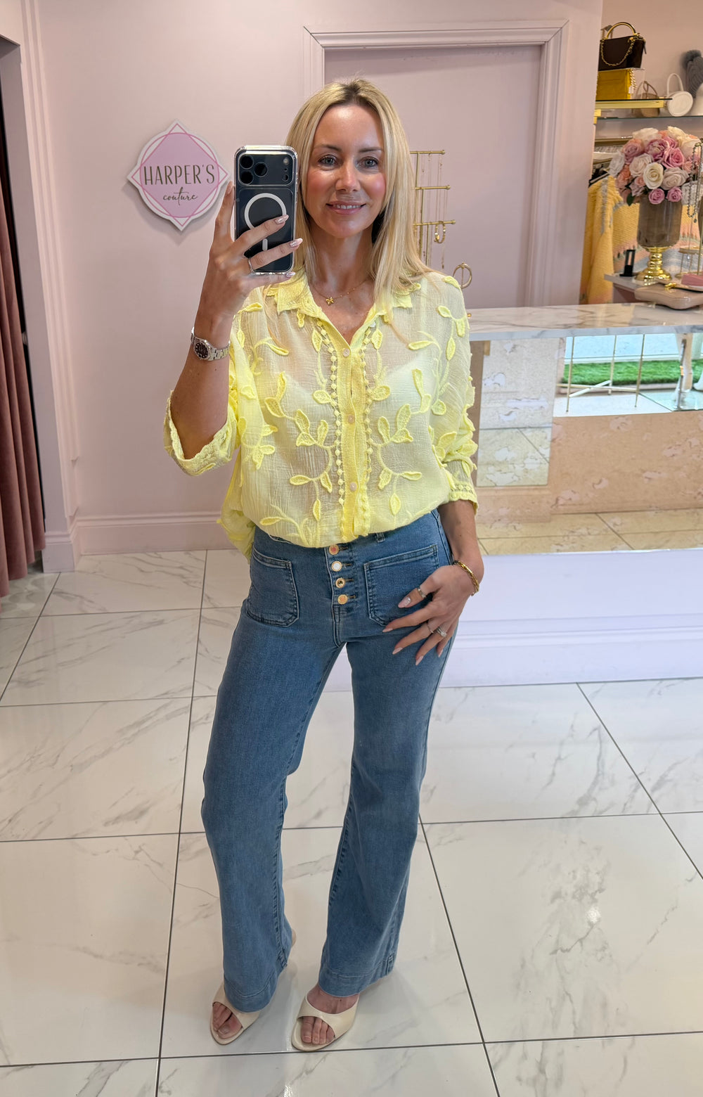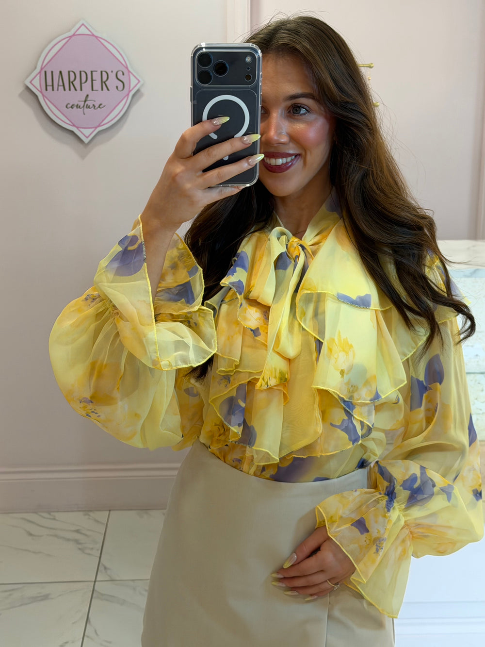 Drew Lemon Floral & Frill Detail Shirt/Blouse