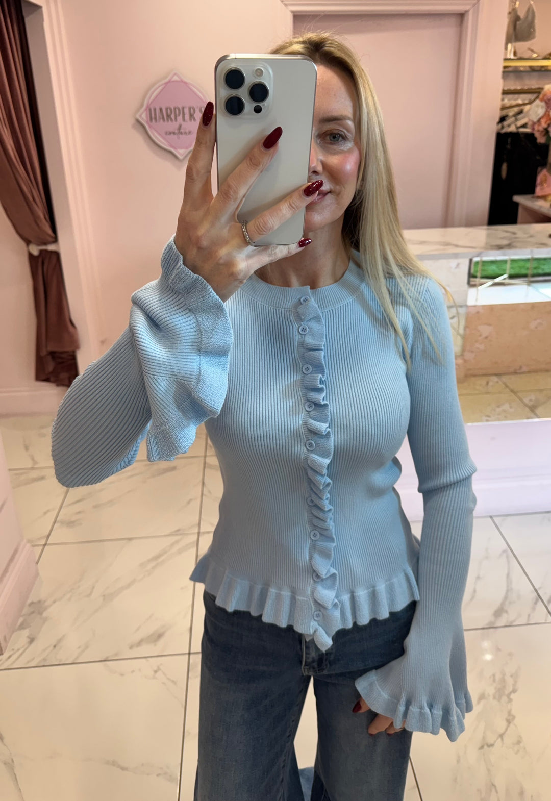 Caris Super Soft Ribbed Knit Fluted Sleeve Jumper
